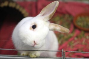 Farbe: weiß-braunDer Kaninchenmann kam am 10.12.2022 mit Kopfschiefhaltung als Fundtier aus Güglingen zu uns.