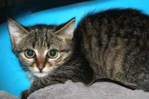 Farbe: getigertDas Katzenkind stammt genau wie Ricky aus einer unkontrollierten Vermehrung in Richen. Dort wurde uns eine scheue Mutter mit ihren Kindern gemeldet, die seit etwa 4-6 Wochen in einem verwildertem Garten leben.