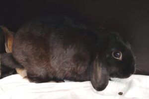 Farbe: schwarzKaninchenmutter Kiana kam am 30.07.2023 gemeinsam mit ihren Kindern und zwei weiteren Widderdamen aus schlechter Haltung zu uns.
