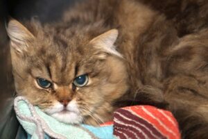 Farbe: getigertDer verfilzte Kater saß in Neuenstadt zwei Tage schreiend auf der Terrasse und kam am 30.07.2023 als über die Tierrettung zu uns. Beim Einfangen zeigte er sich nicht kooperativ.
