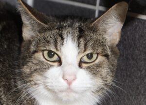 Farbe: getigert-weißMutter Lolita und ihre beiden Kinder Leandra und Leroy wurden auf einem Spielplatz in Lauffen gefunden, mit nachhause getragen und am 16.12.2023 im Tierheim abgegeben. Alle drei sind sehr zutraulich.