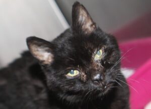 Farbe: schwarzDie ältere Katze kam abgemagert und in schlechtem Allgemeinzustand am 20.04.2024 als Fundtier zu uns.