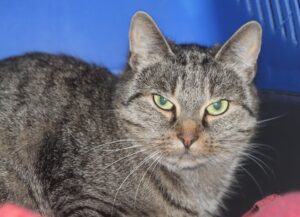 Blake ist noch schüchtern und muss den Umgang mit Menschen noch lernen. Sie ist verträglich mit anderen Katzen.