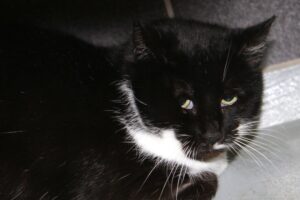 Farbe: schwarz-weißDie Katze stammt von einer unkontrollierten Katzenpopulation am Botanischen Obstgarten in Heilbronn, die uns vom Veterinäramt gemeldet wurde. An der gleichen Stelle haben wir bereits vor drei Jahren zahlreiche Katzen eingefangen.
