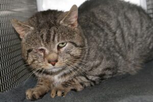 Farbe: getigertDer Kater kam als Fundtier mit einem schlimmen Auge aus Untergriesheim am 20.02.2025 ins Tierheim.