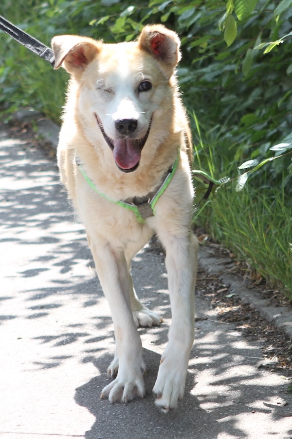 Der 12 Jahre alte Rüde wurde im Januar 2025 von Touristen im Pravat-Tal in Rumänien ausgesetzt aufgefunden und in die Smeura gebracht. Dort wurde er medizinisch versorgt und aufgepäppelt. Oppo ist Menschen gegenüber freundlich und aufgeschlossen, die Pfleger vor Ort beschreiben ihn als sehr menschenbezogen und verschmust. Auch mit seinen Artgenossen versteht er sich gut. Am rechten Auge hat er eine Hornhauttrübung, zeigt dadurch aber keine Beeinträchtigung.