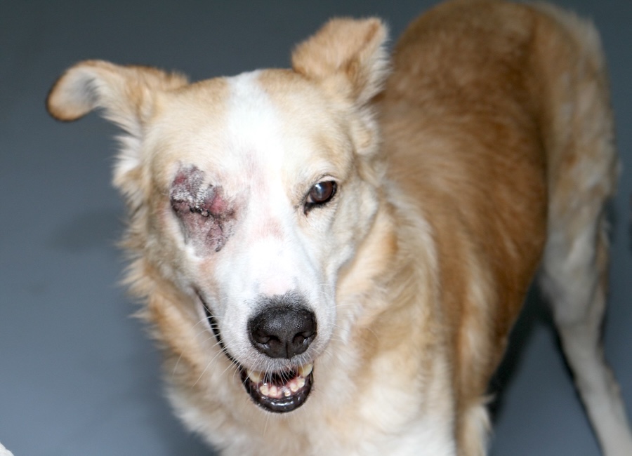 Oppo wurde der Augentierärztin vorgestellt. Sein rechtes Auge weist einen Hornhautdefekt auf und besitzt keine Sehfunktion mehr. Zunächst hatte er dadurch keine Schmerzen oder Beeinträchtigungen. Nachdem der Augendruck anstieg, wurde ihm am 23.04.2025 sein rechtes Auge entfernt.