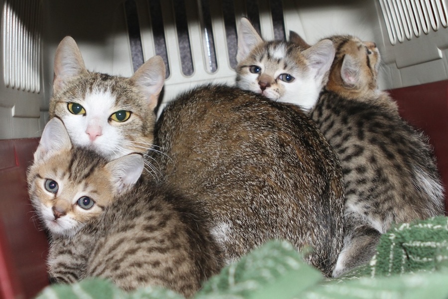 Die Katzenmutter hatte sich mit ihren drei Kindern Lana, Linus und Lola in einem Schuppen in Neckarsulm niedergelassen und konnte am 08.06.2025 gesichert werden.