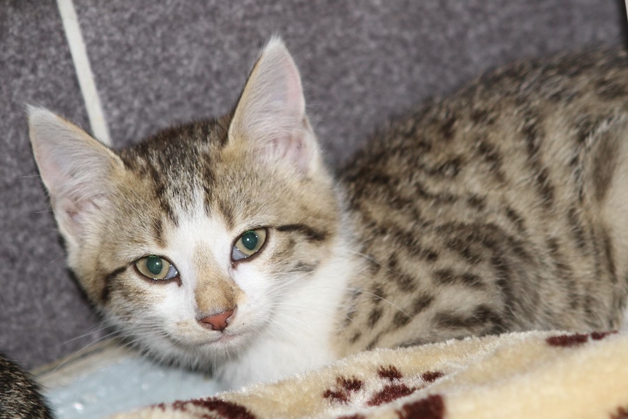 Jolie, weiblich, getigert-weiß, braune Nase – vermittelt