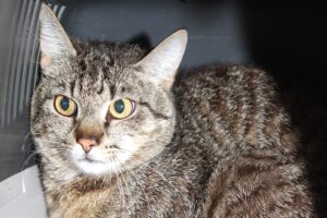 Farbe: getigertDer Kater stammt von einer Streunermeldung aus Obergriesheim, wo sich seit letztem Jahr Katzen unkontrolliert vermehrt haben. Die Streuner tauchen immer wieder bei der Suche nach Futter am Feldrand und auf einer Terrasse auf. Otis konnte am 13.06.2025 gesichert werden.