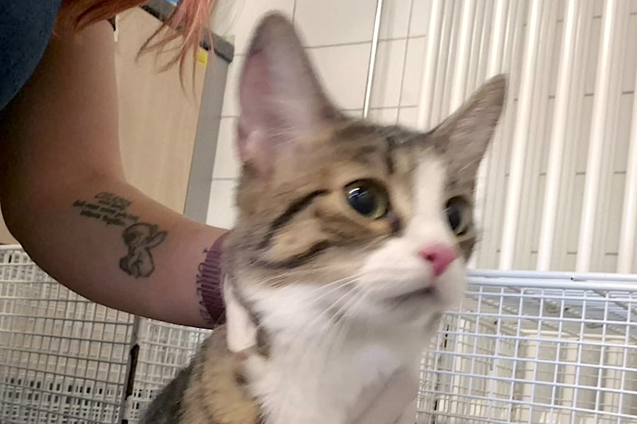 Die etwa 1 Jahr alte Katzenmutter Bubbletea wurde am 09.07.2025 zusammen mit zwei weiteren Müttern und 12 Katzenkindern – darunter auch ihre eigenen – abgegeben.