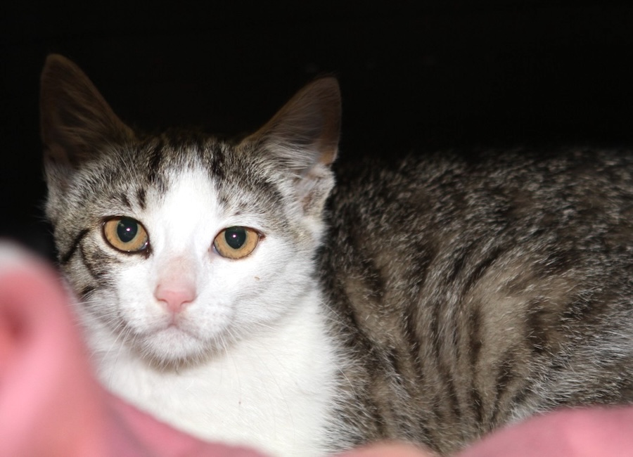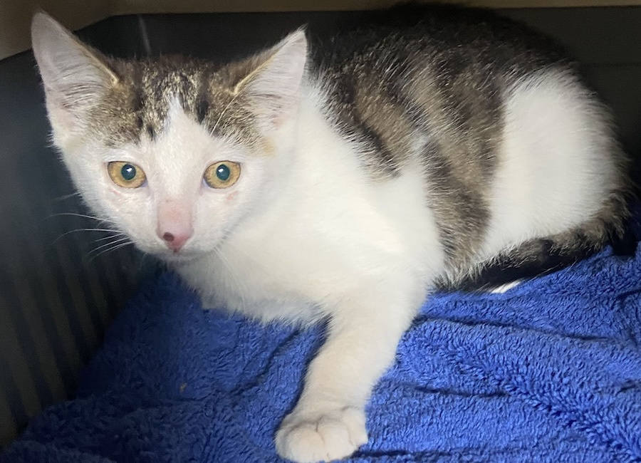 Sheldon, männlich, getigert-weiß, Fleck auf der Nase