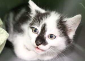 Farbe: schwarz-weißDas Katzenkind stammt von einer Streunermeldung in Offenau. Dort hatte sich eine Katzenfamilie in einem Holzstapel niedergelassen. Iva konnte am 26.07.2025 gesichert werden.