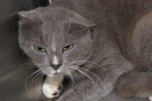Farbe: grau mit weißDer Kater stammt von der gleichen Stelle wie Gulliver und Gregory. Er wurde bei den Hühnern in einem Garten in Gundelsheim am 01.08.2025 eingefangen.