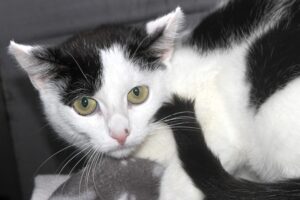 Farbe: schwarz-weißDie Katzenmutter stammt von einer unkontrollierten Vermehrung in Obergriesheim und hat sich mit ihren Kindern in einer Scheune niedergelassen. Am 02.08.2025 konnte die Familie gesichert werden.