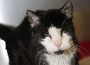 Farbe: schwarz-weißDer ältere Kater war schon längere Zeit auf dem Firmengelände von Lidl in Bad Wimpfen unterwegs und kam am 09.09.2025 zu uns ins Tierheim.