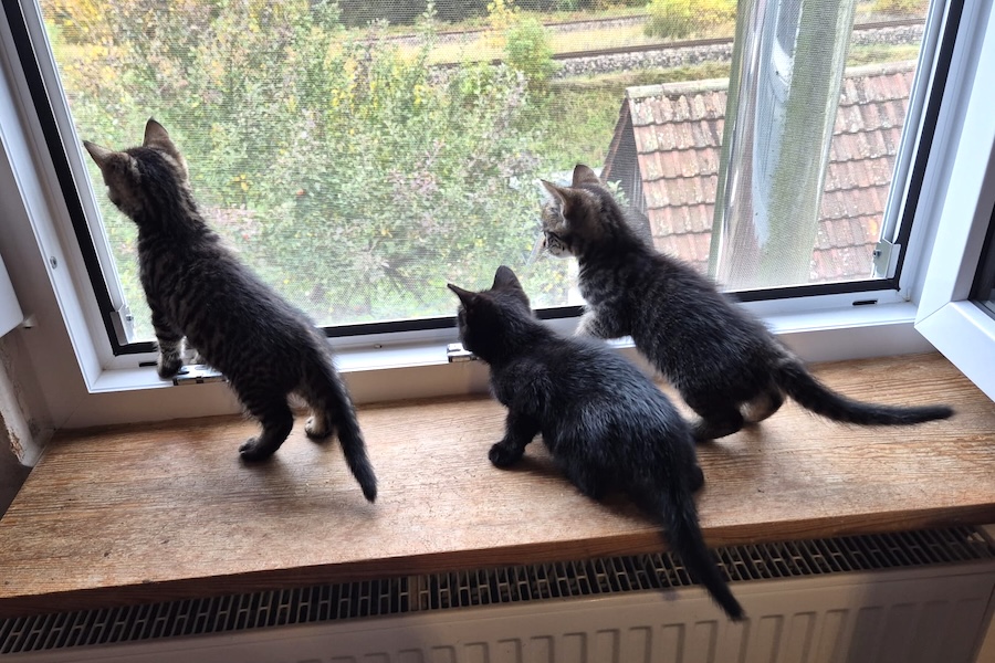 Die drei Geschwister wurden uns gemeinsam mit ihrer Mutter Kiara in einer Gartenlaube am Weinberg in Heilbronn-Klingenberg gemeldet und konnten am 20.09.2025 gesichert werden.