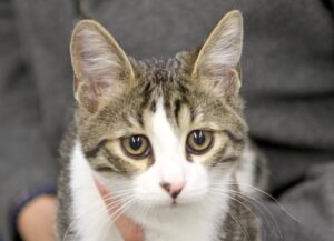 Farbe: getigert-weißDer junge Kater saß durchnässt in Heilbronn in einem Garten und kam am 25.09.2025 ins Tierheim.