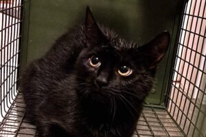 Farbe: schwarzDie Jungkatze stammt von einem Gartengrundstück in Heilbronn-Biberach wo der Besitzer verstorben ist und seither gefüttert wurde. Am 25.09.2025 konnte sie gesichert werden. Sie ist vermutlich die Schwester zu Macarena.