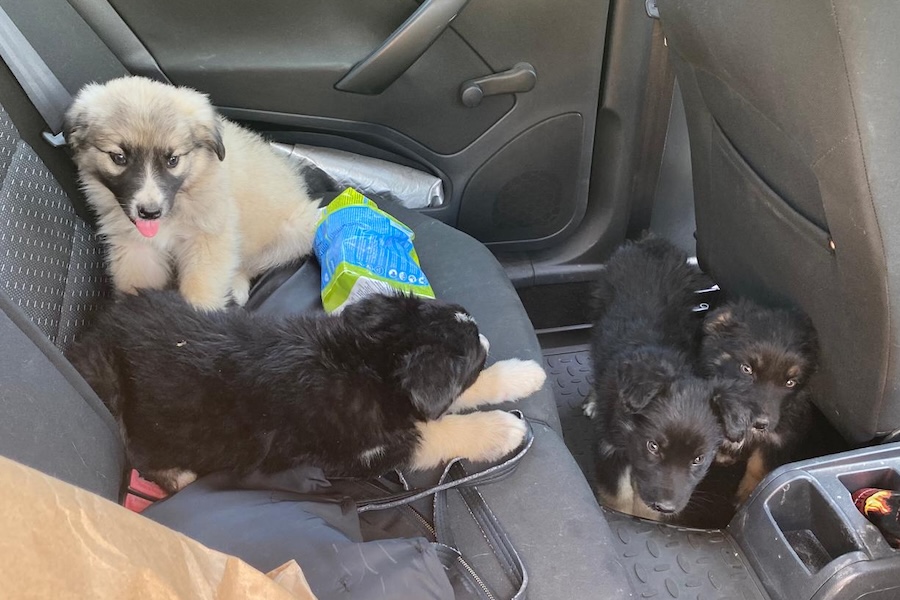 Die mittlerweile 7 Monate alte Hündin wurde als Welpe von zwei Studentinnen beim Joggen in einem Wald in der Nähe von Timisoara, Rumänien, gefunden. Zusammen mit ihren vier Geschwistern waren sie dort ohne ihre Mutter unterwegs.