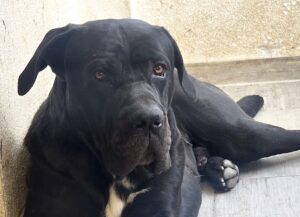 Rino lebt von Welpe an in seiner Familie und lebt aktuell mit dem neunjährigen Sohn und einer siebenjährigen Cane Corso Hündin zusammen. Beim Spaziergang reagiert er auf andere Hunde eher ungehalten. Der Rüde hat viel Kraft und Energie. Er kennt die gängigen Grundkommandos und ist es gewohnt, auch mal stundenweise allein zu bleiben.