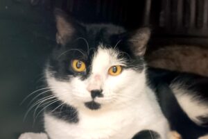 Farbe: schwarz-weißDer Kater stammt gemeinsam mit Mutter Bijou und deren Kindern von einer Streunermeldung am Hörnle in Brackenheim und konnten am 28.10.2025 von Für alle Felle Eppingen e.V. gesichert werden. Vermutlich ist Bernd der Vater der Kinder.