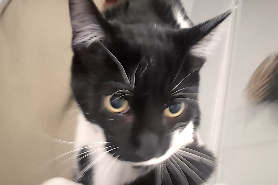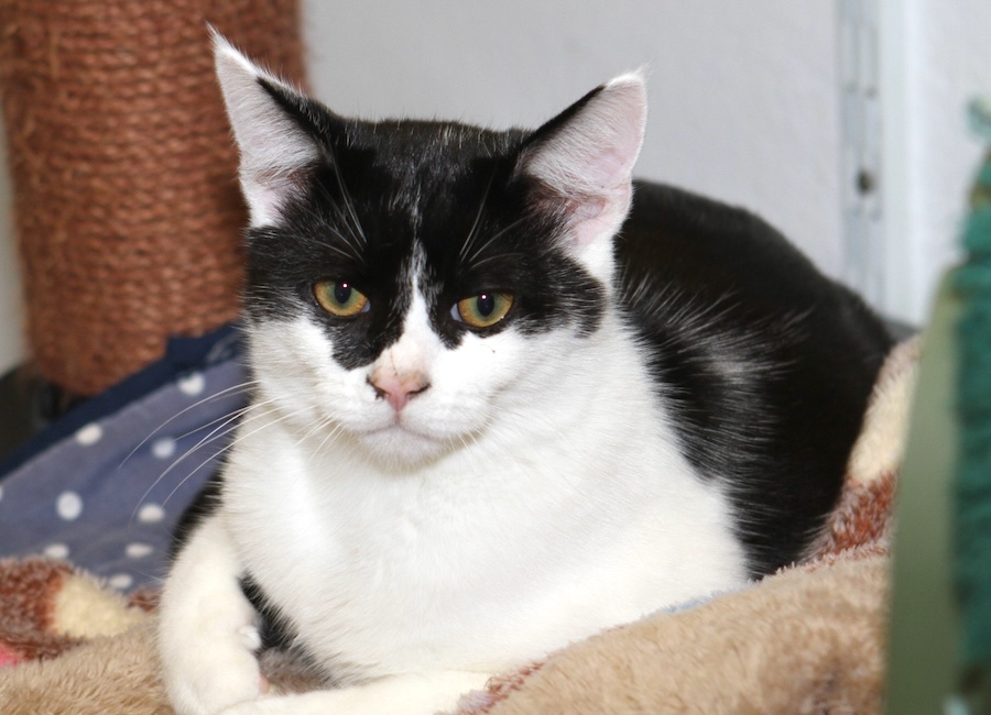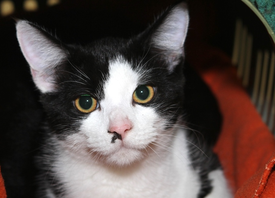 Julian, männlich, schwarz-weiß (schwarzer Punkt auf Nase)