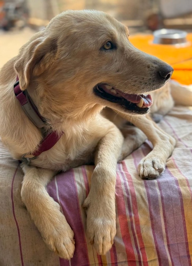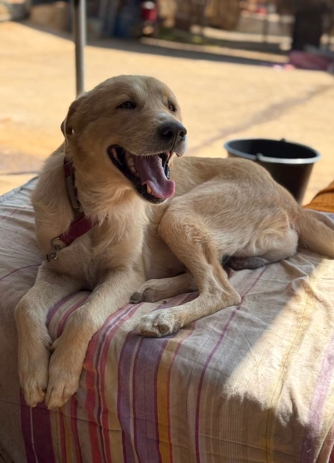 Der etwa 6 Jahre alte Rüde wurde im April 2025 in Kalami, einem kleinen Dorf unweit von Kalamata in Griechenland gefunden und von Tierschützern in einer Auffangstation aufgenommen. Patrick war völlig entkräftet, abgemagert, voller Zecken und hatte Räude. Er wurde umgehend tierärztlich versorgt und konnte sich langsam erholen.