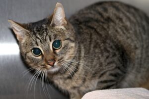 Farbe: getigertDie Katze stammt von einer Streunermeldung in Bad Friedrichshall-Kochendorf wo immer wieder in einem Garten auftaucht und um Futter bettelte. Am 01.11.2025 konnte sie gesichert werden.