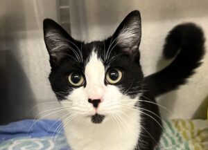 Farbe: schwarz-weißDie nette Jungkatze wurde am 04.11.2025 abgegeben, weil sich die Nachbarn über ihren Freigang durch das Treppenhaus beschwert hatten.