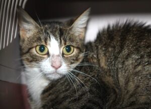 Farbe: getigert-weißDer Katze stammt von einer Streunermeldung aus Obergriesheim, wo sich seit letztem Jahr Katzen unkontrolliert vermehrt haben und im Sommer bereits einige Katzen eingefangen wurden. Oyama konnte am 18.11.2025 gesichert werden.