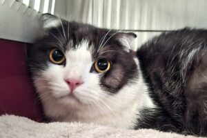 Farbe: schwarz-weißDer Kater kam mit zittrigen Beinen am 19.11.2025 als Fundtier aus Oedheim ins Tierheim. Er stand seit 5-6 Tagen immer wieder bei einer Gaststätte vor der Tür und wollte rein.Bei der Scottish Fold handelt es sich um eine sogenannte Qualzucht. Die charakteristisch nach unten gefalteten Ohren dieser Rasse entstehen durch einen gezielt angezüchteten Gendefekt, der den Knorpelaufbau beeinträchtigt. Diese genetische Veränderung betrifft jedoch nicht nur die Ohren, sondern kann auch Knorpel- und Knochenschäden an anderen Stellen des Körpers verursachen. Die Erkrankung nennt sich Osteochondrodysplasie (OCD) und kann zu chronischen Schmerzen und Bewegungseinschränkungen führen.