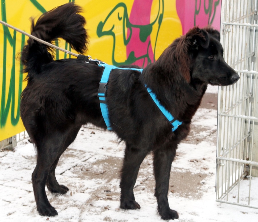 Krischa ist etwa 1-2 Jahre alt und zeigt sich sehr aktiv. Menschen gegenüber ist er freundlich, teilweise auch etwas stürmisch. Bei uns teilt er sich einen Auslauf mit einer gemischten Hundegruppe und ist mit Artgenossen gut verträglich.