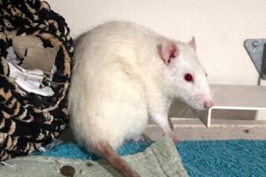 Farbe: weißDer etwa 6-7 Monate alte Rattenmann wurde am 19.02.2026 abgegeben, da er in seinem vorherigen Zuhause sehr gestresst war und kaum zur Ruhe gekommen ist.