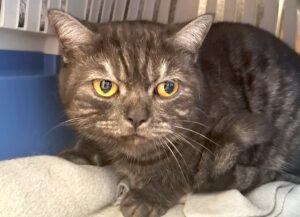 Farbe: rauchfarbenDie 1,5 Jahre alte Katzendame wurde am 25.02.2026 gemeinsam mit Miro wegen einer Allergie abgegeben.