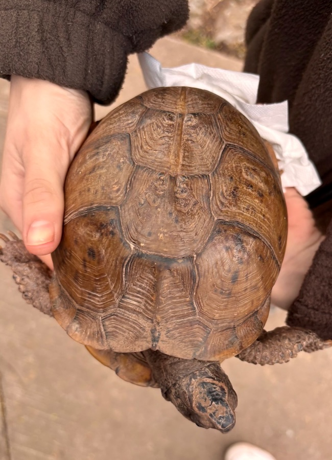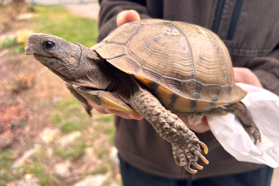 Die Sumpfschildkröte wurde am 05.03.2026 unter einem Gebüsch am Friedhof in Kirchhausen gefunden und am 11.03. im Tierheim abgegeben.