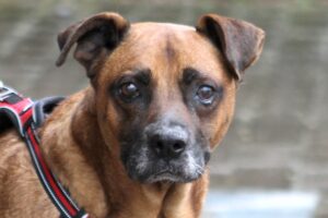 Rudi wurde im Sommer 2025 aus Ungarn übernommen. Laut ursprünglicher Beschreibung ist er in etwa 10 Jahre alt, ein Tierarzt hier hat ihn etwas jünger geschätzt. Beim ersten Kennenlernen bei uns im Tierheim wirkten seine Augen leicht trüb und er machte den Eindruck, als würde er nicht mehr ganz so gut sehen und hören.