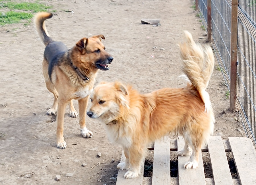 Die etwa 2,5 Jahre alten Brüder Max und Moritz wurden in Bulgarien bei einer Tierschützerin im Nachbarort über den Zaun eines unbewohnten Anwesens geworfen. Beide waren bereits kastriert und gechippt. Über das Kastrazentrum konnte herausgefunden werden, dass sie bei einer älteren Frau lebten, die inzwischen verstorben war. Irgendwer hat die beiden Hunde anschließend ausgesetzt.