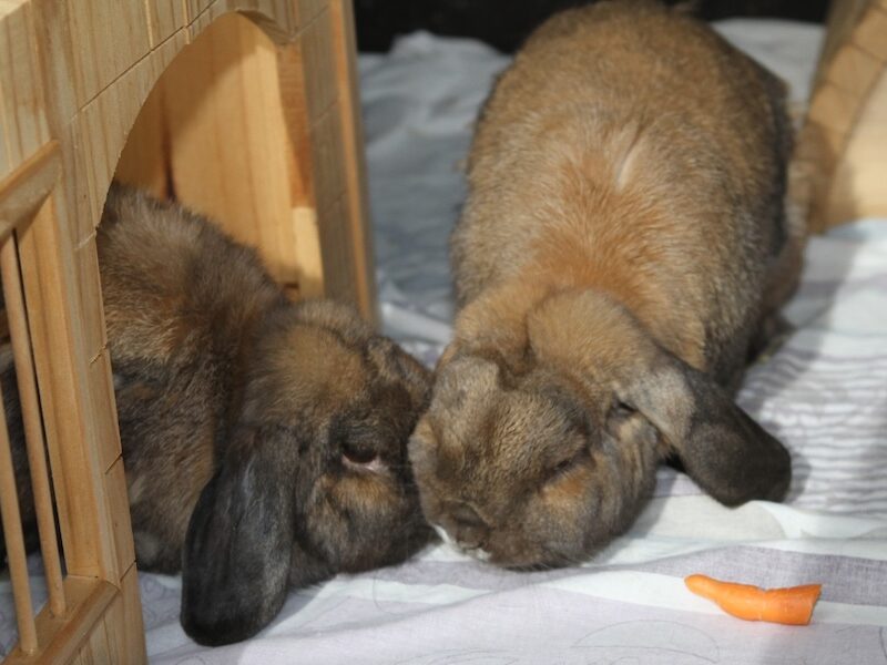 Bei einem Kaninchen- oder Meerschweinchenpaar setzen wir mind. 4 m² Grundfläche zur freien Bewegung plus täglichen Auslauf voraus. Für die Außenhaltung ist eine wind- und wetterfeste Schutzhütte unverzichtbar. Wir vermitteln nicht in kleine, handelsübliche Käfige oder Stallhaltung.